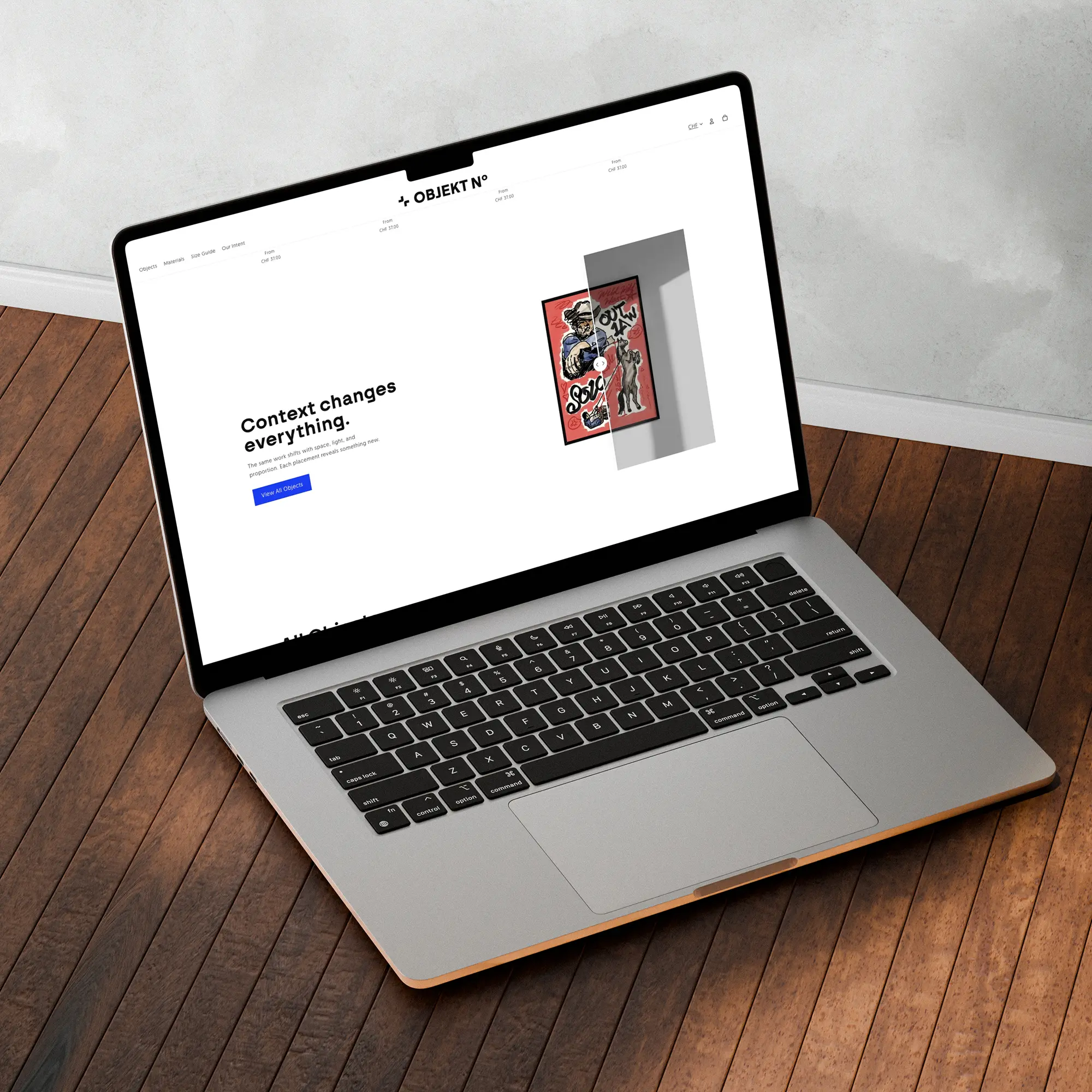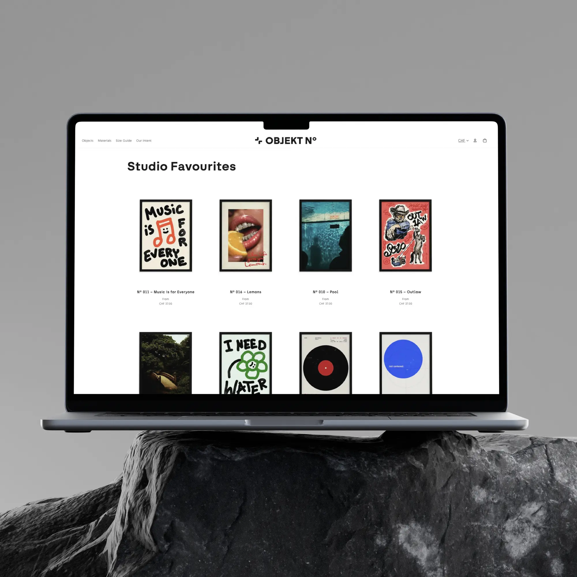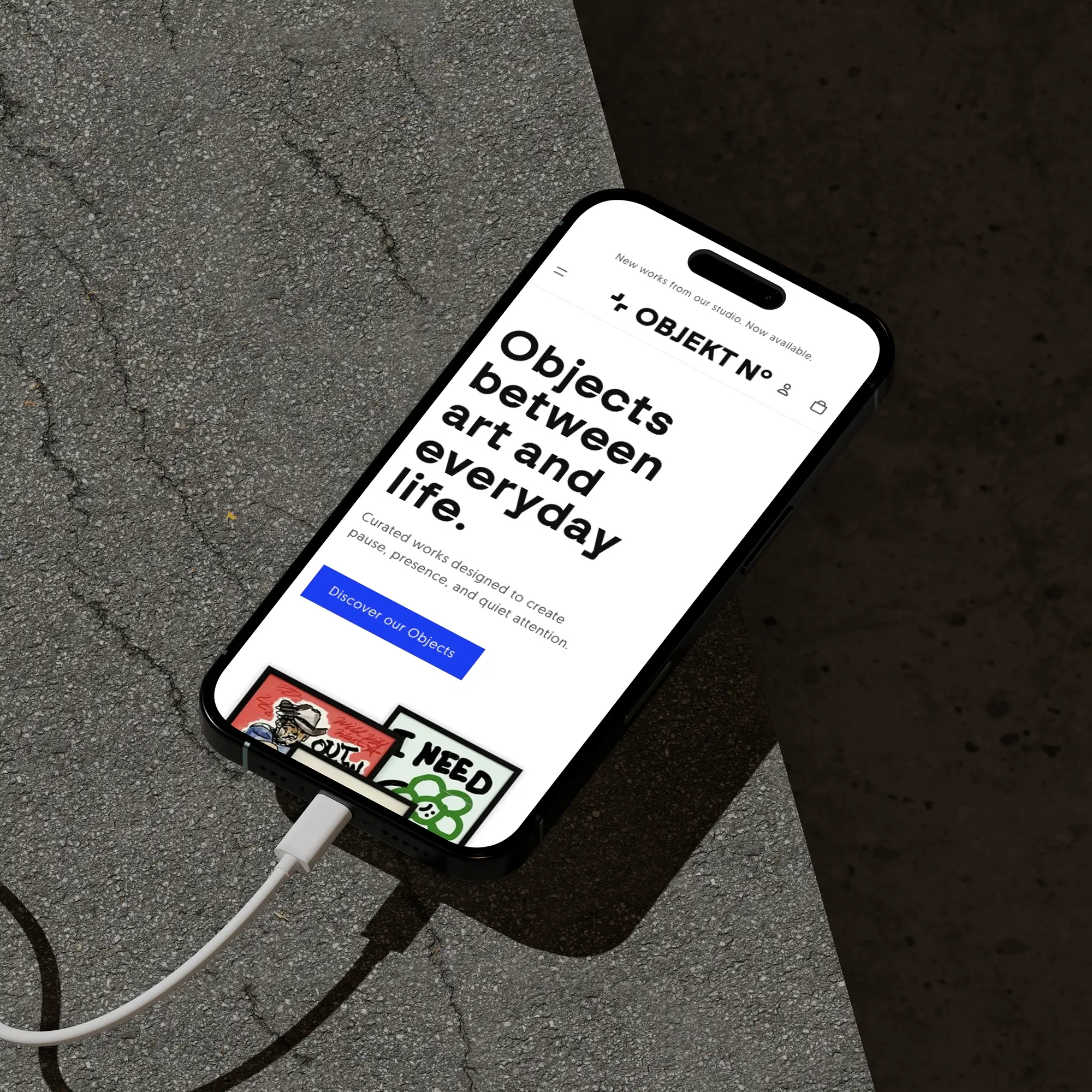For OBJEKT Nº, I designed and built the entire webstore from the ground up, from structure and UX flows to the visual language and brand system behind it. The goal was not just to sell products, but to create a calm, intentional experience that reflects the character of the works themselves. The UI is deliberately reduced and precise, giving the artworks space to breathe while guiding users clearly through the store. UX decisions focused on clarity, rhythm, and confidence, removing noise and friction without feeling empty or cold. Every interaction, spacing decision, and layout choice serves usability first, aesthetics second. In parallel, I developed the branding to align tightly with the products: quiet, considered, and material-driven. Typography, colour, and tone were chosen to feel timeless and gallery-like, while still working reliably in an e-commerce environment. The result is a store that feels distinct and premium, without relying on trends, and where brand, product, and user experience work as one coherent system.